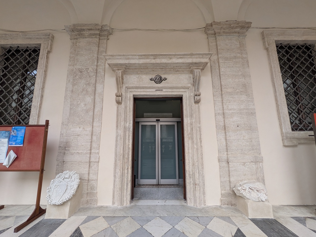 Ground floor of the Palazzo della Sapienza, accessed from the Corso del Rinascimento, November 2025.