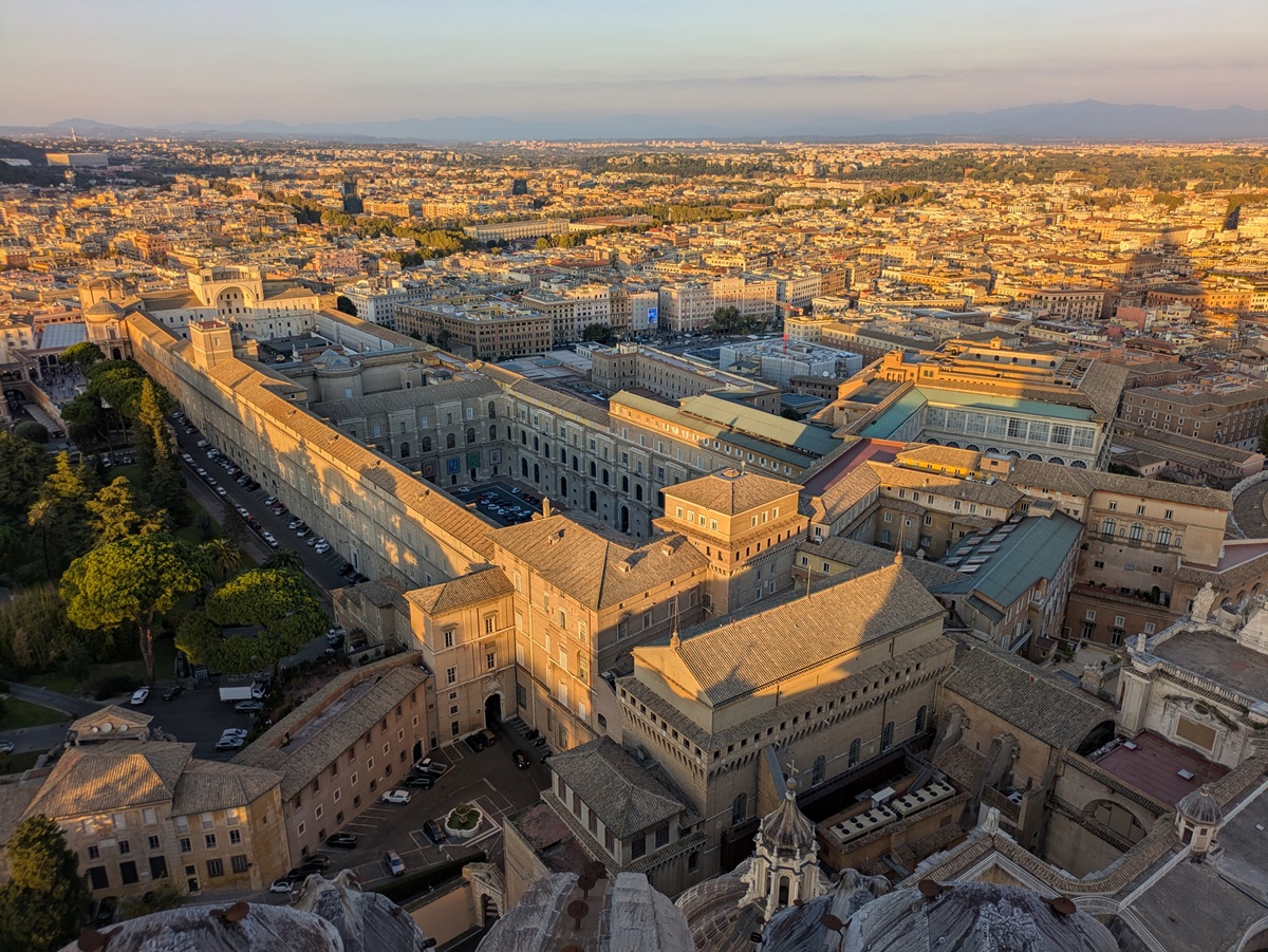 The Cortile del Belvedere, home to the Archivio Apostolico Vaticano, from the Basilica di San Pietro, November 2025.