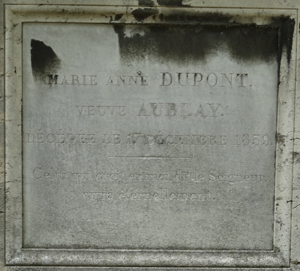 Nancy’s subsequent life was eventful, but obscure in the historiography. She went on to marry Edme-Pierre Aublay, lived for a time in Philadelphia, ran a small boarding school (first on Cherry Street in Birmingham and then on Russel Square in London), endured the tragic death of her son, Francis (or François), an undergraduate student at the University of Oxford, corresponded with Joseph Banks, dedicated a book of religious instruction to her grand nephews, Felix and Eugene, invoking their learned grandfather, Jacques-Pierre, found herself one day captivated by the religious writing of Sir Matthew Hale, and died on the rue Saint-Honoré in Paris in December 1839, aged seventy-three. She was buried in the Père Lachaise cemetery.